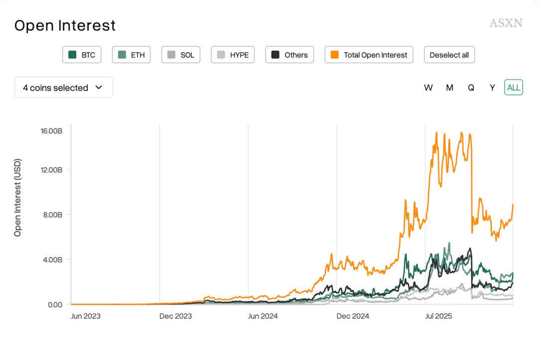 注意一下,这和 Perp DEX 卷不死 Hyperliquid 并不冲突,币圈的资产只有 BTC/ETH,现阶段整体 Perp 市场规模已经阶段性触顶。