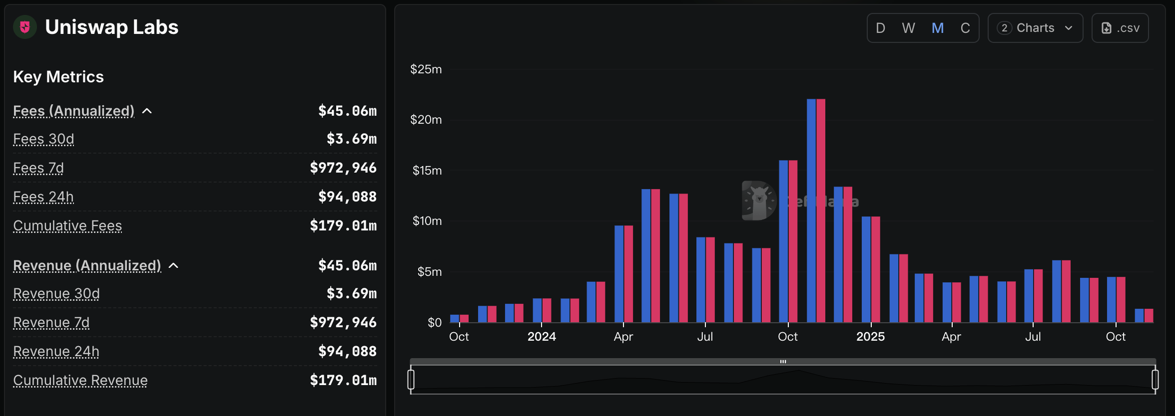 在加密分析师Haotian看来,盼望了多年的UNIfication社区提案终于换了主角,这一次由 Uniswap Labs和Uniswap Foundation联合发起终于不再是“狼来了”的模糊游戏,等于认可了UNI要捕获价值的目标。按照目前提案内容计算,保守估计一年会有数亿美元的持续回购买盘,给足了未来可持续增长的想象空间。当前,整个蓝筹DeFi项目都在用真实收入推动代币回购来证明自己不是空气,Uniswap作为DEX龙头,憋到现在才官宣,耐人寻味,或等于给整个链上协议确定了“协议收入必须反哺代币”的标杆。也逼着那些还在靠所谓治理权和社区信仰撑场面的项目,是时候得站出来证明自己了。山寨币终于踏上了“自证”、“自托”、“自扩”价值之路。