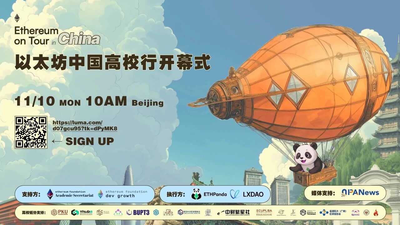 本次开幕式是 Ethereum Foundation Developer Growth 与 Academic Secretariat团队主导的 “Ethereum on Tourˮ 全球教育计划的⼀部分。继⾛进美国、英国、印度等 20 余所知名⾼校后,中国站将成为连接以太坊与中国⾼校开发者的重要⾥程碑