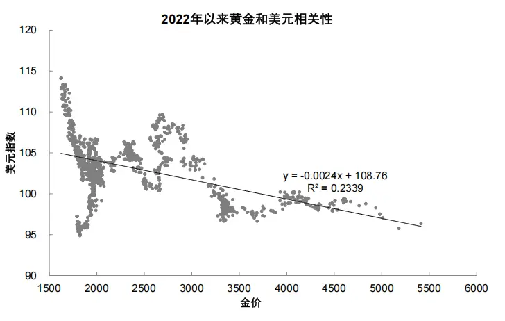 ► 是因为地缘风险下的避险需求吗?也是重要因素。2022年以来地缘风险频发,2025年特朗普再度当选总统并发起“对等关税”后,美国经济政策不确定性指数快速攀升,对应金价上行斜率变陡。