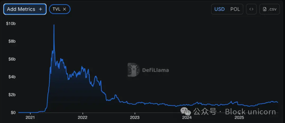 到 2025 年中,Polygon 面临新的挑战。$POL 价格从高点下跌超 80%。来自 Arbitrum 和 Optimism 的竞争性第二层解决方案正在抢占市场份额。公司在繁荣时期扩张到 600 名员工,导致文化问题和组织臃肿。