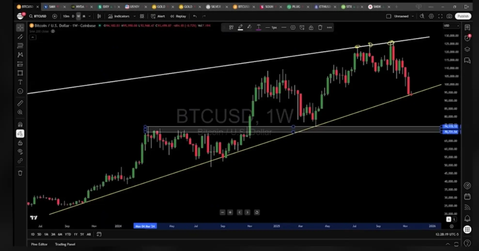如果股市下跌并引发恐慌,人们不幸地还是会抛售比特币。目前比特币的关键支撑约在73,000到75,000美元之间(许多顶/突破点在该区支撑)。若空方赢得战斗,比特币可能回到73,000到75,000美元,甚至更低,如果多头能守住这条线,我们可以回到127,000、128,000甚至130,000美元。