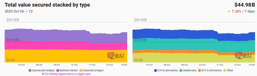 ● 据L2Beat数据显示,以太坊Layer2总TVL为449.8亿美元,本周较上周478.8亿美元,整体跌幅为7.36%。