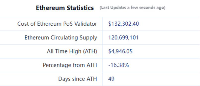 ETHUSD :现价 3,456美元,历史最高价 4,946 美元,距最高价跌幅约16.38%。