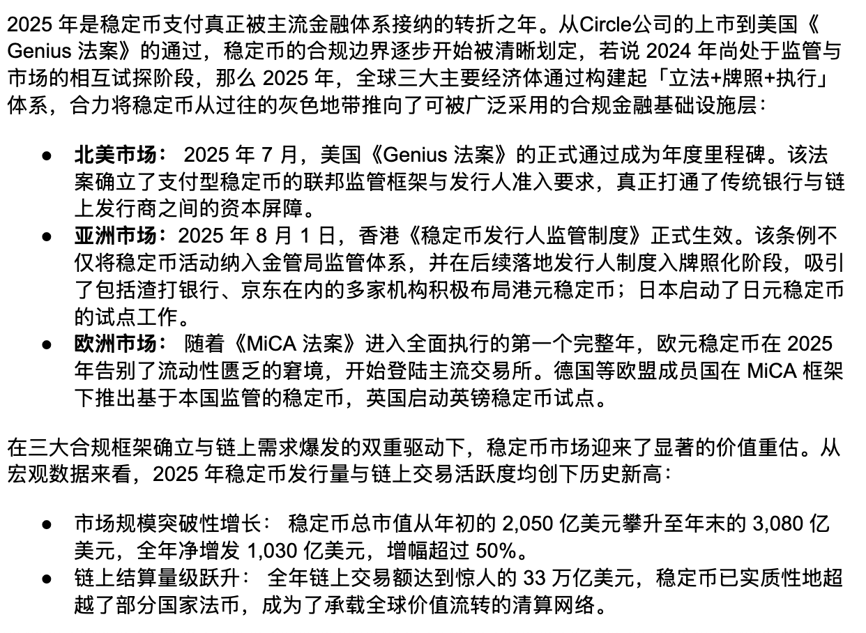 基于此,本报告将从钱包视角出发,简单回顾 2025 年链上生态中与日常金融密切相关的关键变化,并在此基础上探讨链上金融在 2026 年的演进方向。