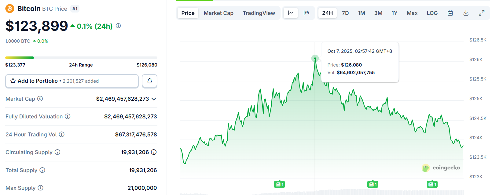 随着投资者对美国政府关门不确定性担忧加剧,一种旨在对冲美元贬值的“贬值交易”正成为今年最受欢迎的投资主题之一,也推动了比特币价格不断走高。北京时间10月7日凌晨,比特币价格突破12.6万美元,续创历史新高,超越此前125689美元纪录。