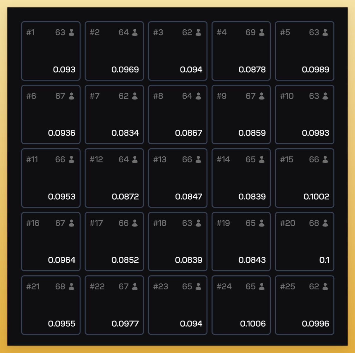 新版挖矿机制更像是一场链上博弈游戏。据介绍,该系统由一个5×5的方格构成,共有25个区块,每一轮持续1分钟。矿工可以通过质押SOL代币在方格上“占据空间”。当一轮结束后,系统会随机选出一个获胜区块,其他24个未中奖区块上的所有SOL将按比例分配给中奖区块上的矿工,分配比例取决于他们在该区块中所占空间的大小。同时,中奖区块中的一位幸运矿工还将额外获得1枚ORE作为奖励(大概每三轮会有一次特别轮次)。