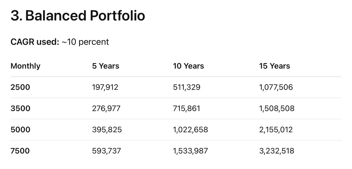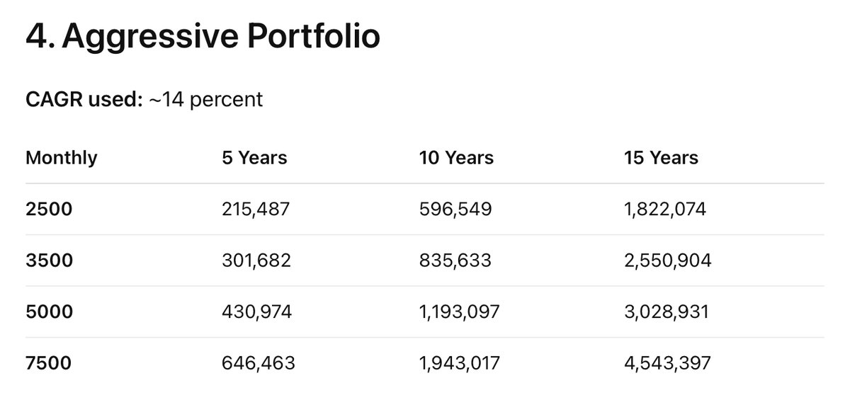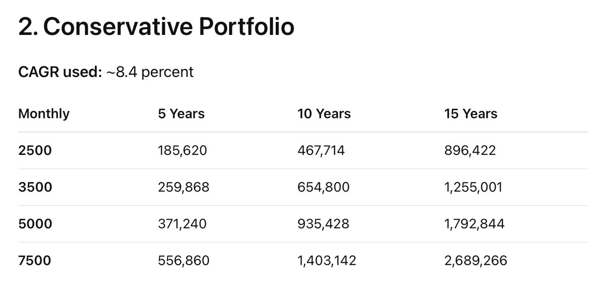 模拟推演:如果按“获取注意力→建立社区→成功变现”的流程推进,可能需要长达2年;成功后,应当能做到每月至少2500美元的“可投资收入”(不用于日常生活)。基于上述各投资组合的CAGR,在5年、10年和15年后的预期回报将是可观的。
