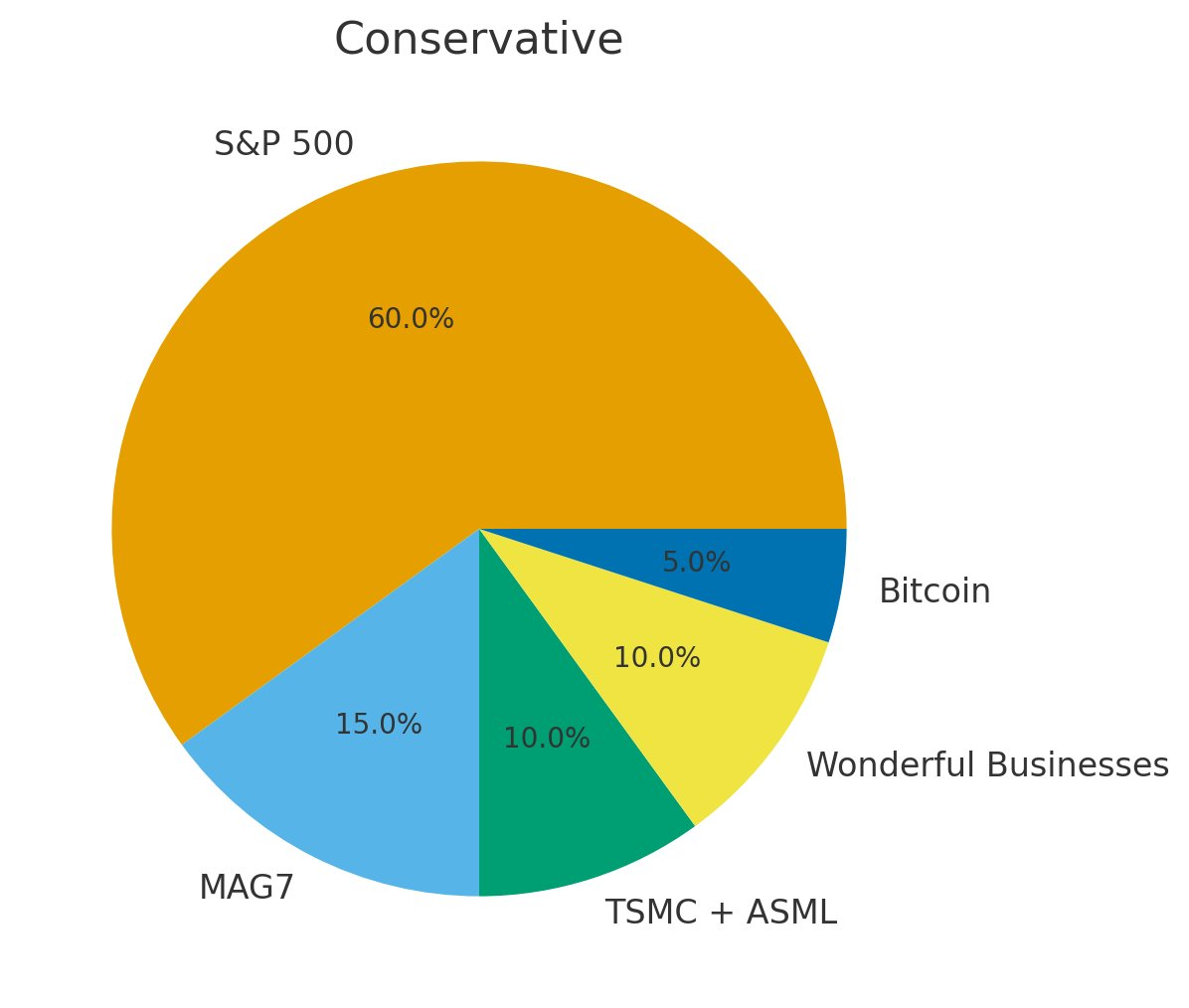 - 5% 比特币:小仓位配置,以获取不对称的上涨潜力,同时不扭曲整体波动性。