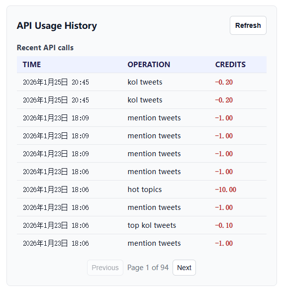 prompt示例:“请调用 /tweet/mention_tweets 接口,搜索 ticker 为 SOL 的推文。限制时间为最近 24 小时。帮我过滤出互动量(点赞+转发)最高的前 5 条,看看大家对 SOL 的情绪如何。”