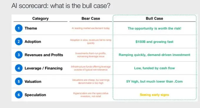 人工智能与数据中心建设最初依靠现金流支撑,如今则转向创纪录的债务发行(如Meta250亿美元超额认购债券)。
