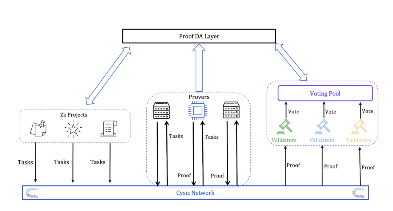 作为面向全行业的 ZK Proof Layer,Cysic 提供高性能、低成本的证明生成与验证服务。网络通过 去中心化 Prover 网络 与 离链验证 + 聚合上链机制 提升效率,并以 PoC 模型 将算力贡献与质押权重结合,构建兼具安全性与激励性的计算治理体系。
