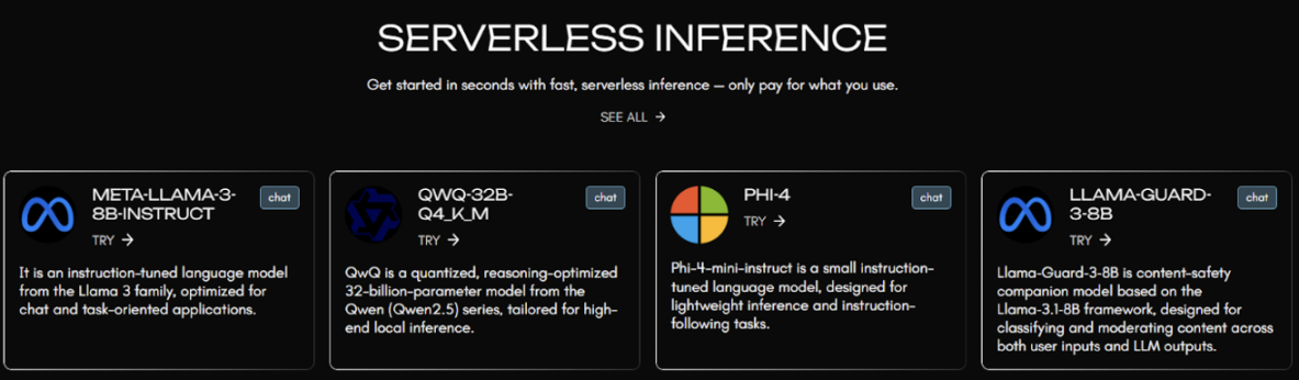 Cysic AI 推出即开即用、按需计费的标准推理服务,用户无需自建或维护算力集群,即可通过 API 快速调用多种主流大模型,实现低门槛的智能化接入。当前支持的模型包括 Meta-Llama-3-8B-Instruct(任务与对话优化)、QwQ-32B(推理增强型)、Phi-4(轻量化指令模型)、以及 Llama-Guard-3-8B(内容安全审查),覆盖通用对话、逻辑推理、轻量部署与合规审查等多元需求。该服务在成本与效率之间取得平衡,既满足开发者快速原型搭建,也能支撑企业级应用的规模化推理,是 Cysic 构建可信 AI 基础设施的重要一环。