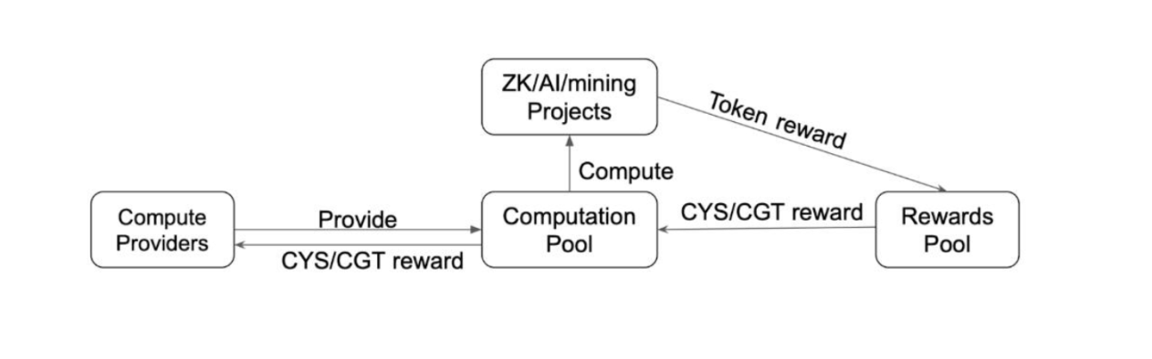 - $CYS(网络代币):为原生可转让资产,用于支付交易费用、节点抵押、区块奖励及网络激励,确保网络活跃度与经济安全。$CYS 也是计算提供者与验证者的主要激励来源。用户可通过质押 $CYS 获取治理权重,并参与算力池(Computing Pool)的资源分配与治理决策。