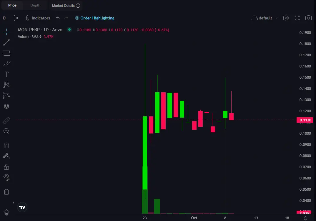 昨晚,Monad 在 X 平台发文宣布,空投申领链接将于 10 月 14 日(星期二)开放。根据 AEVO 数据,MON 代币盘前价格在确定空投申领时间后一度上涨至 0.14 美元,目前价格有所回落,暂报 0.117 美元。