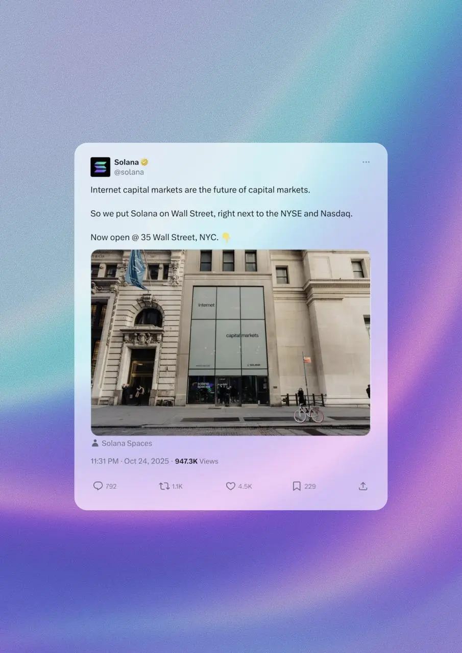 整体来看,仅在 2025 年 1 月至 11 月之间,Solana 及其他生态的 ICM 驱动式交易量就已超过数百亿美元,这一规模标志着注意力正在迈向一种成熟的金融原语,而互联网资本市场正处在加速成型的早期阶段。