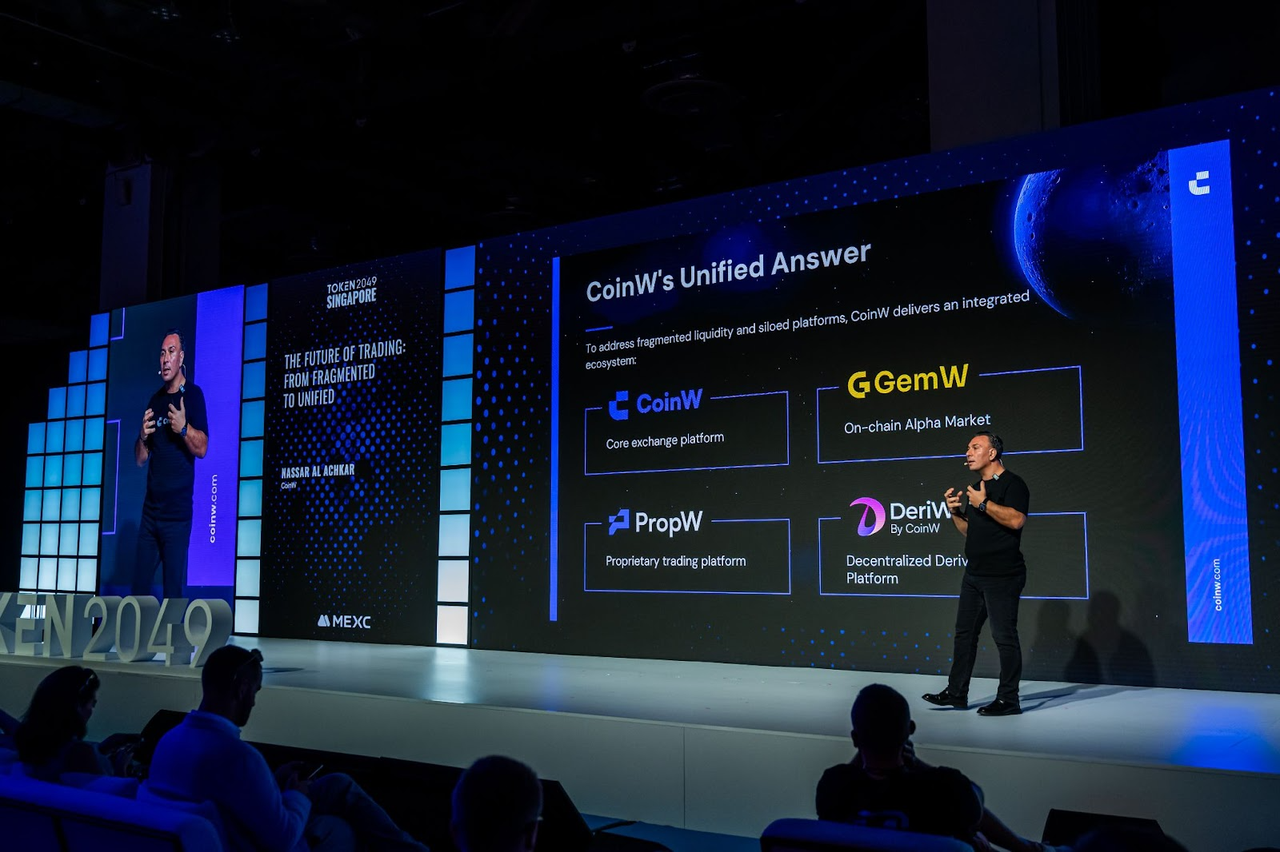 同时,思想共建也成为重要组成部分。CoinW 首席战略官 Nassar Al Achkar在主会场发表《交易的未来:从分散到融合》的主题演讲,从技术与生态角度阐述交易平台未来的发展路径,并指出“融合”与“可信”将是推动下一阶段行业演进的关键方向。