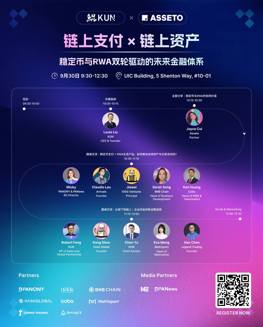 全球金融的下一轮爆发,必然源于链上支付网络与万亿美元RWA资产的深度融合。这场融合将彻底改变资本流动的方式,重塑全球资产配置的格局。本次由鲲KUN与Asseto联合发起的研讨会,正是聚焦这一历史性交汇。