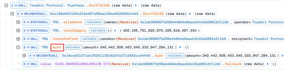 3. 攻击者通过burn函数将铸造的代币“卖回”给合约,从合约储备中提取了大量 ETH。
