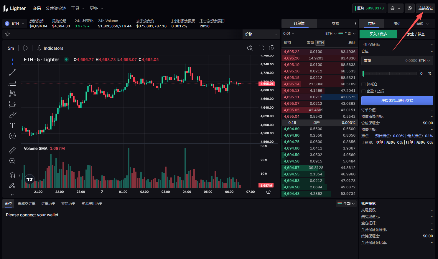 STEP 1. 进入官方平台(链接:https://app.lighter.xyz/trade/),连接钱包完成账户登陆。