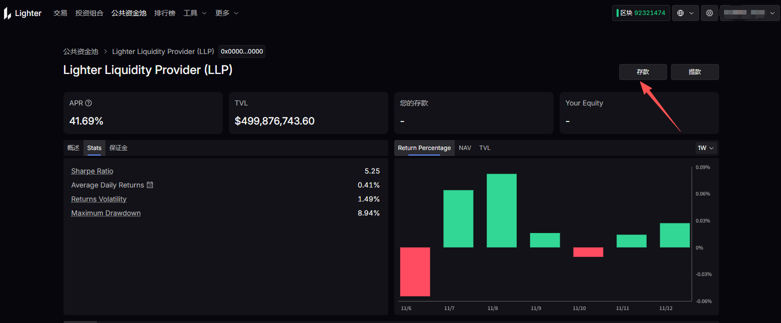 STEP 2. 点击「公共资金池」后选择 LLP,存入资金,即可开始交易赚积分。