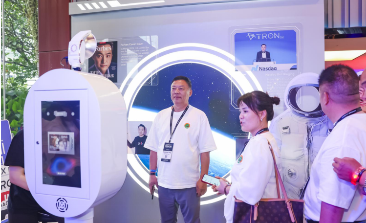 互动专区则成为嘉宾们的创意舞台:AI 技术生成的专属大片,让参与者重现“置身太空舱远眺地球”的壮阔视角;五大沉浸式主题拍照模版——纳斯达克上市、福布斯封面、浩瀚太空、先锋香蕉艺术、波场TRON生态,则让每一位来宾都带走了独特的记忆与荣耀。
