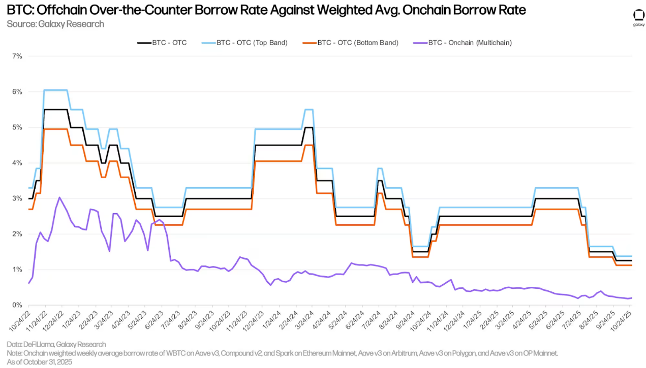截至 9 月 30 日,比特币的场外交易利率在本季度下降了 175 个基点,从 3%降至 1.25%。