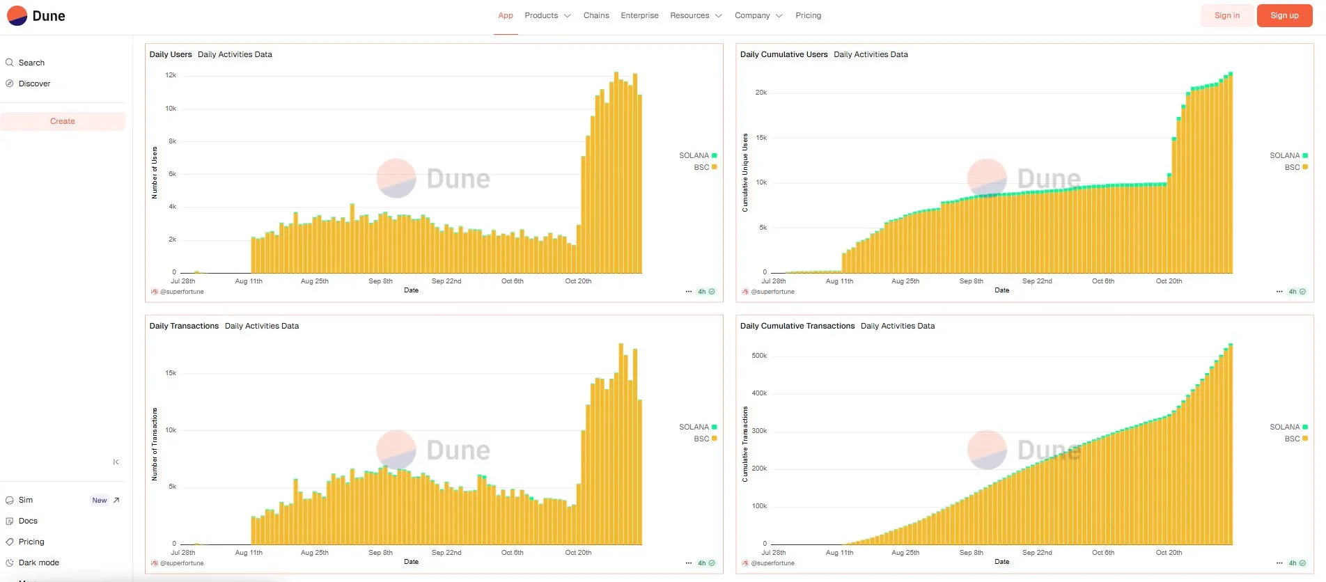 目前,superfortune 在自然流量情况下,日活用户已激增至 21,976,DappBay AI 目录排名第2。