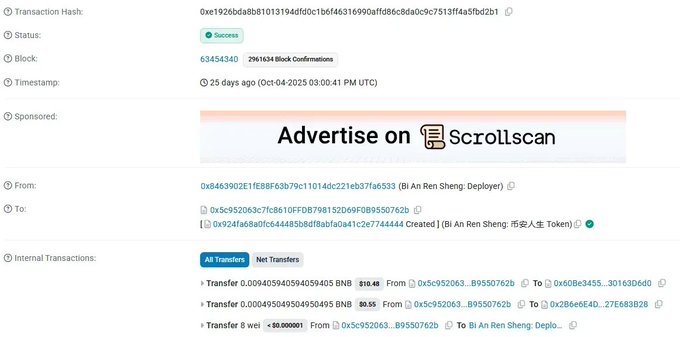2025 年 10 月初,BSC 链上突然杀出一匹黑马 ——「币安人生」 MEME币横空出世。