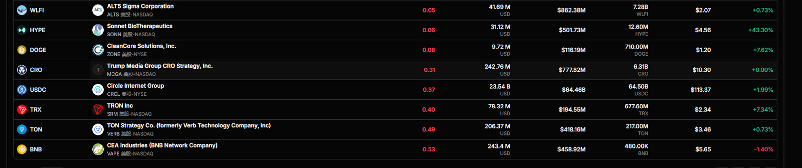 从短期的市场表现来看,即便是入场的步伐放缓,这些DAT公司仍然是加密市场较为稳定的新鲜血液,并且不在某种极端情况下,这些企业不会轻易出售持有的加密资产。部分山寨币,DAT企业的持仓占比已经超过了总市值的5%甚至更多。
