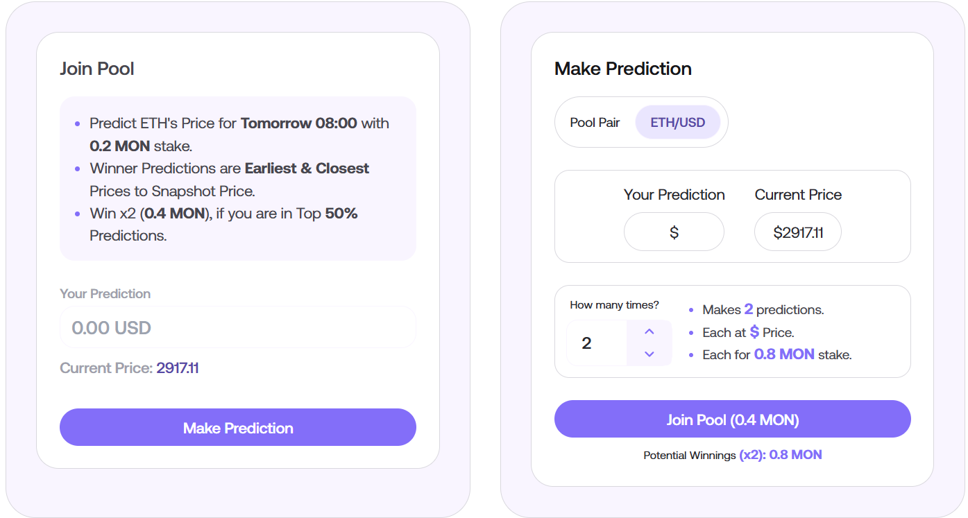 目前,Castora已经上线了ETH价格预测等早期池子,是Monad社区内交互较为高频的dApp之一。