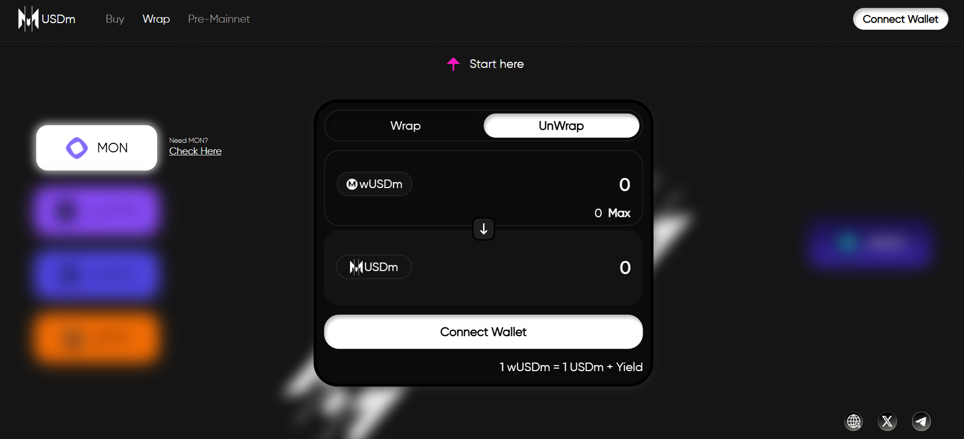 Mynt (USDm) 是一个零知识证明稳定币协议,其底层架构是由Succinct的SP1 zkVM(零知识虚拟机)驱动,并结合了抵押铸币模式。用户可使用MON代币作为抵押品铸造USDm,同时从储备资产中赚取收益。Mynt重视可验证的隐私性,其与 Fairblock 合作,使用加性同态加密(PHE)与多方计算 (MPC) 技术对加密交易金额,避免了抢先交易的风险。