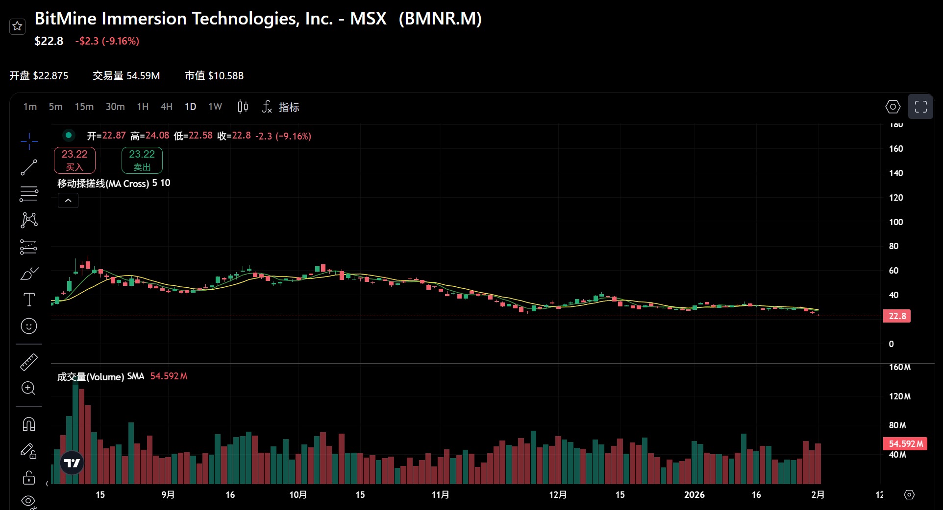 然而,成也以太,败也以太。 随着ETH 价格的深幅回撤,BitMine 股价的溢价泡沫迅速破裂,目前已一路坠落至22.8 美元。