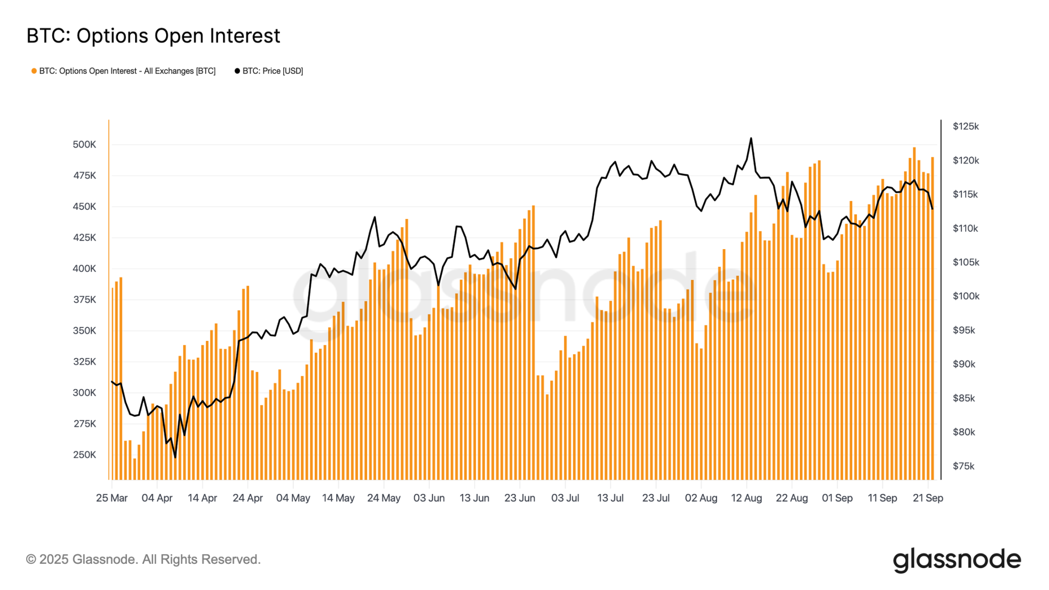 期权总未平仓合约徘徊在历史高点附近,并将在周五早间到期时急剧减少,然后在 12 月之前重新建立市场。目前,市场处于峰值区域,即使微小的价格波动也会迫使做市商进行激进的对冲。做市商在下行方向做空,在上行方向做多,这种结构会放大抛售同时限制反弹。这种动态将近期波动风险偏向下行,加剧了脆弱性,直到到期清除且头寸重置。