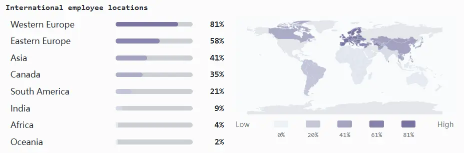 - 东欧:63% 的后期公司在此招聘,被强大的工程人才储备和成本效益所吸引