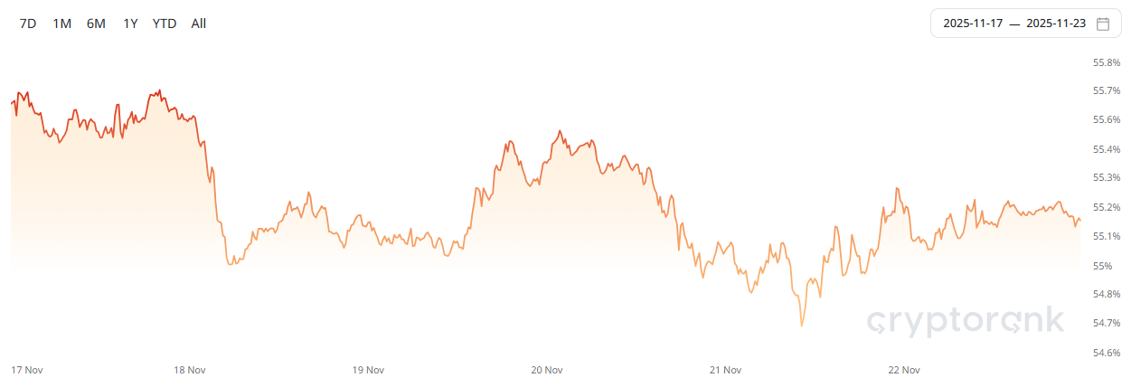 数据来源:Cryptorank,https://cryptorank.io/charts/btc-dominance