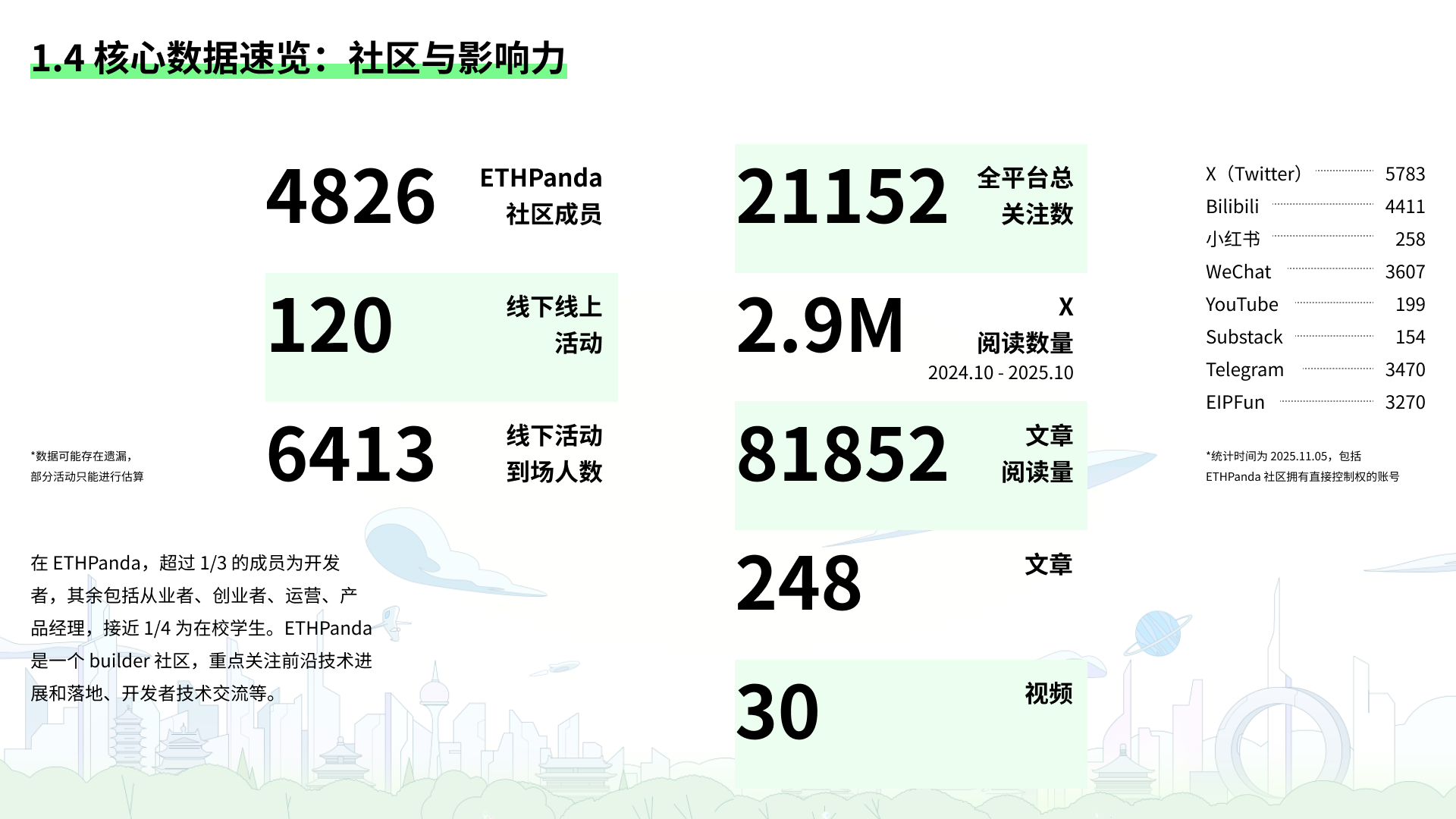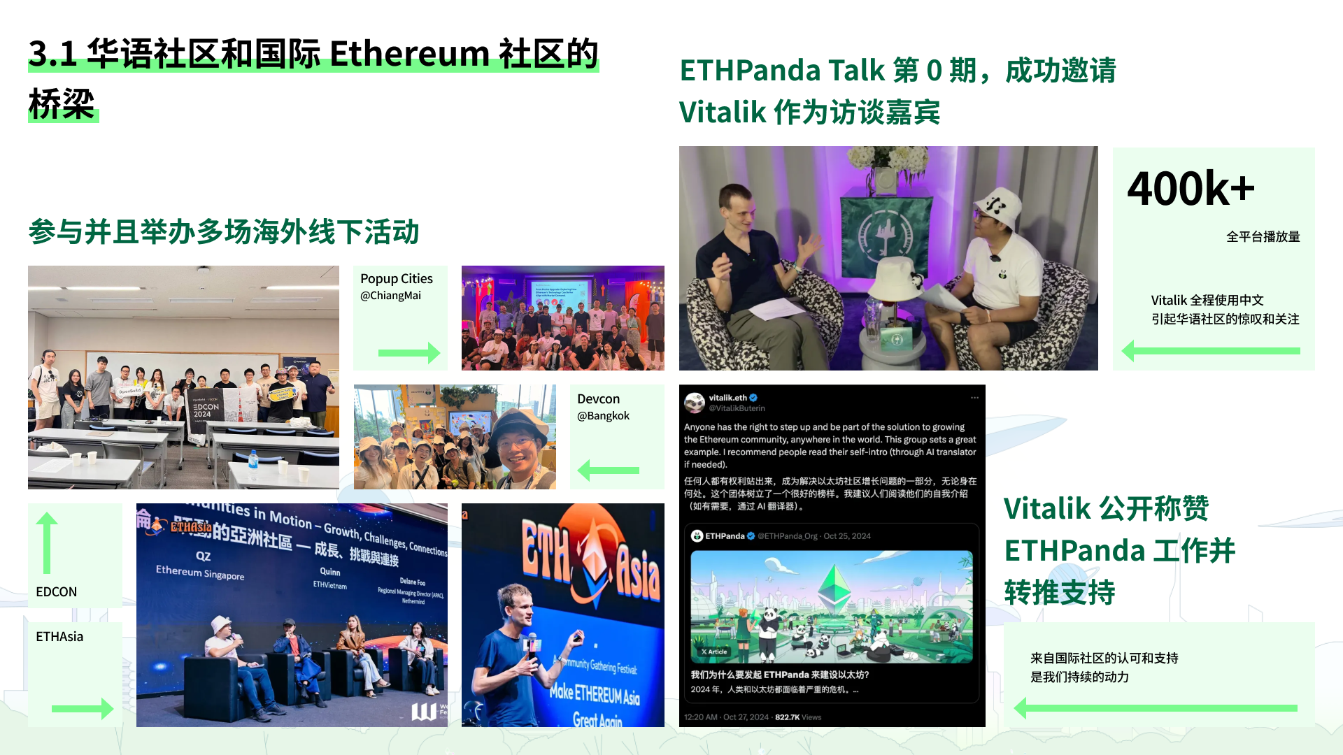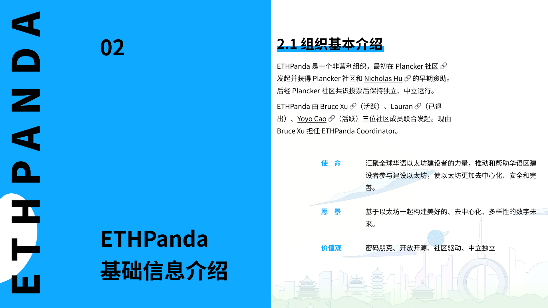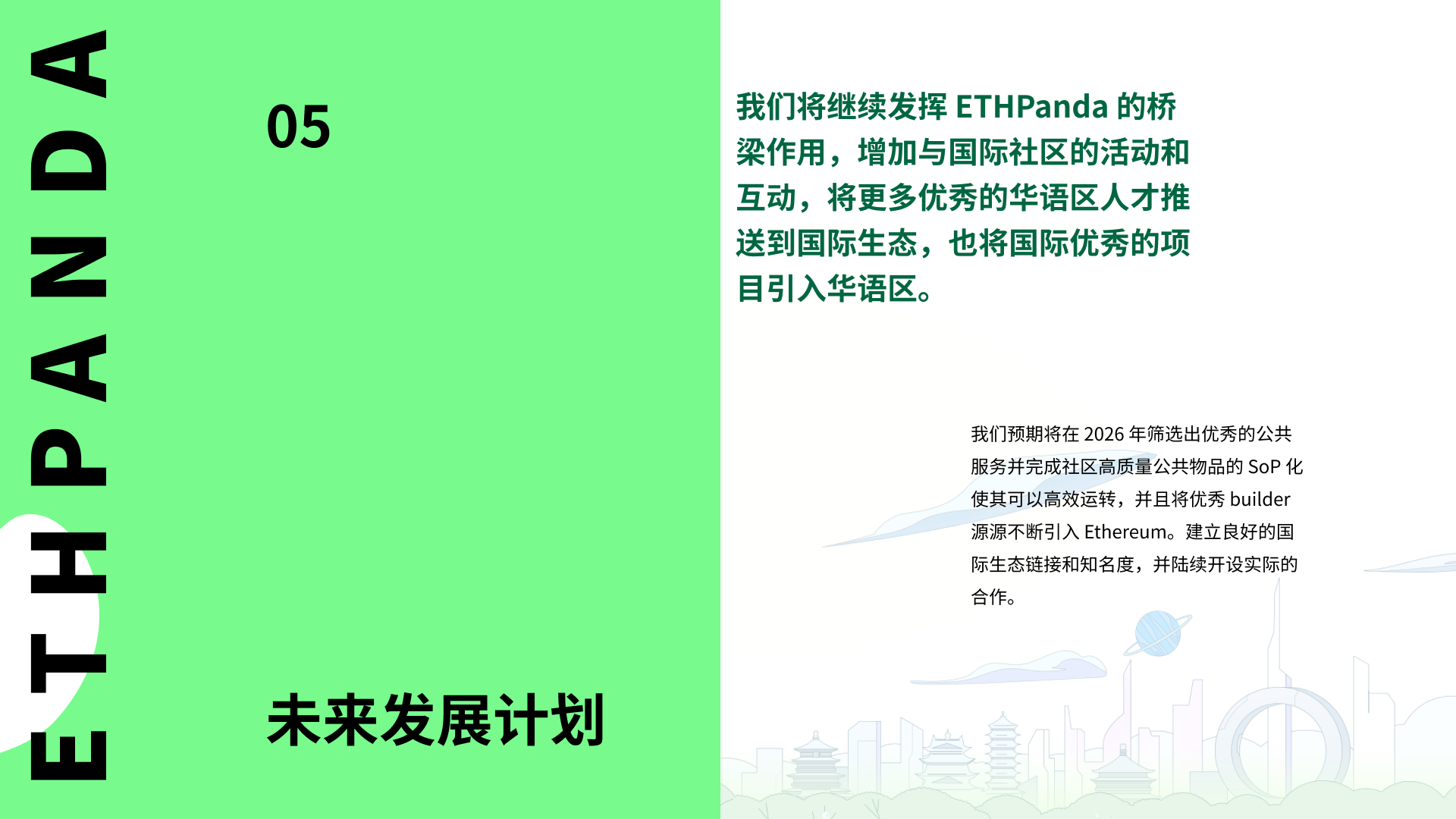 桥梁·建设·理想主义|ETHPanda 2024-2025年度报告 项目动态 2025-11-11 08:37:31 ETHPanda 是一个由华语建设者组成的以太坊社区,致力于通过教育、公共服务、活动和技术创新,连接华语建设者与国际以太坊生态,共同推动以太坊的持续发展与创新。 、